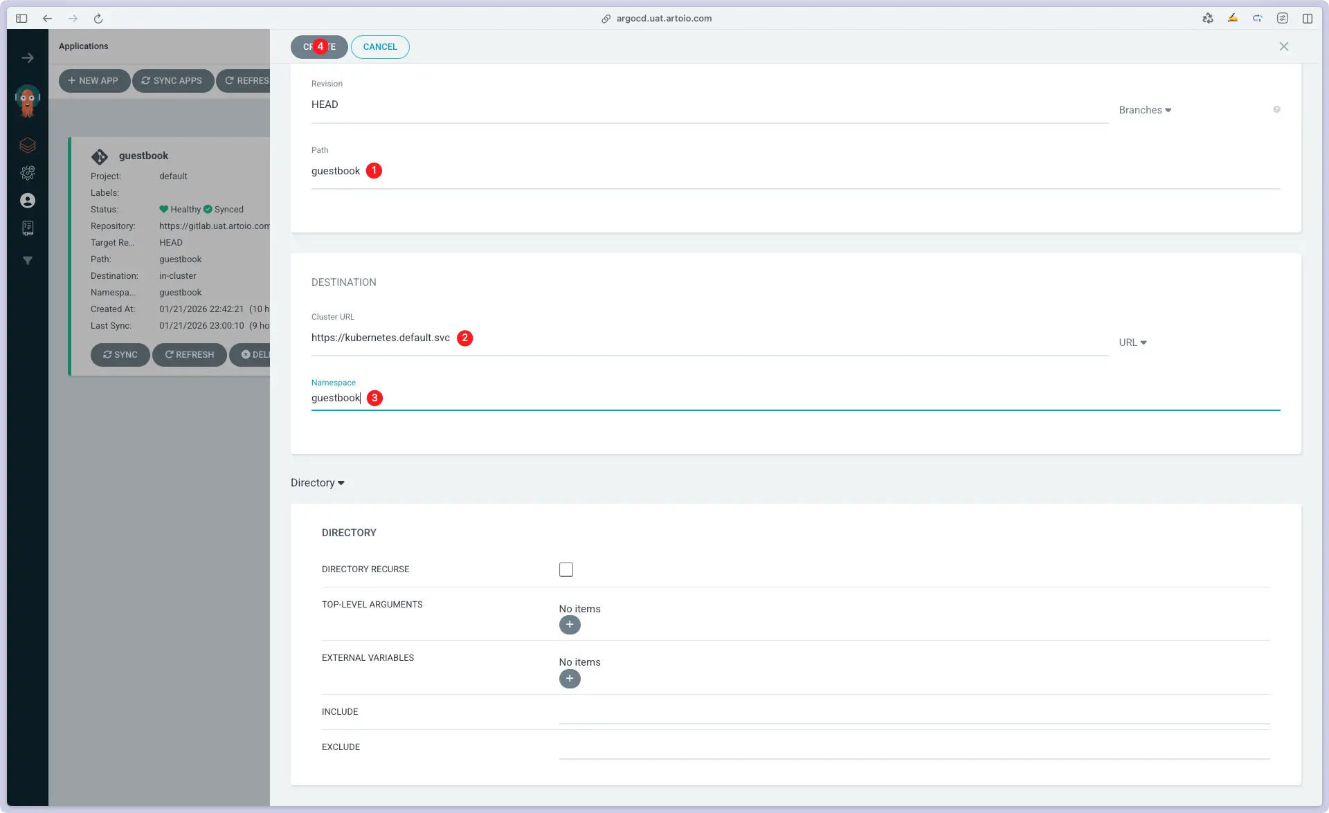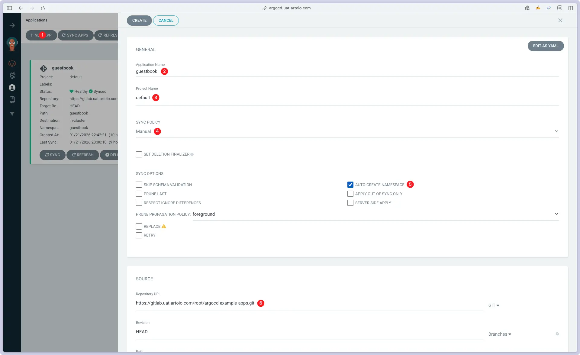 argocd app create --name blue-green --repo https://gitlab.uat.artoio.com/root/argocd-example-apps.git --dest-server https://kubernetes.default.svc --dest-namespace default --path blue-green && argocd app sync blue-green