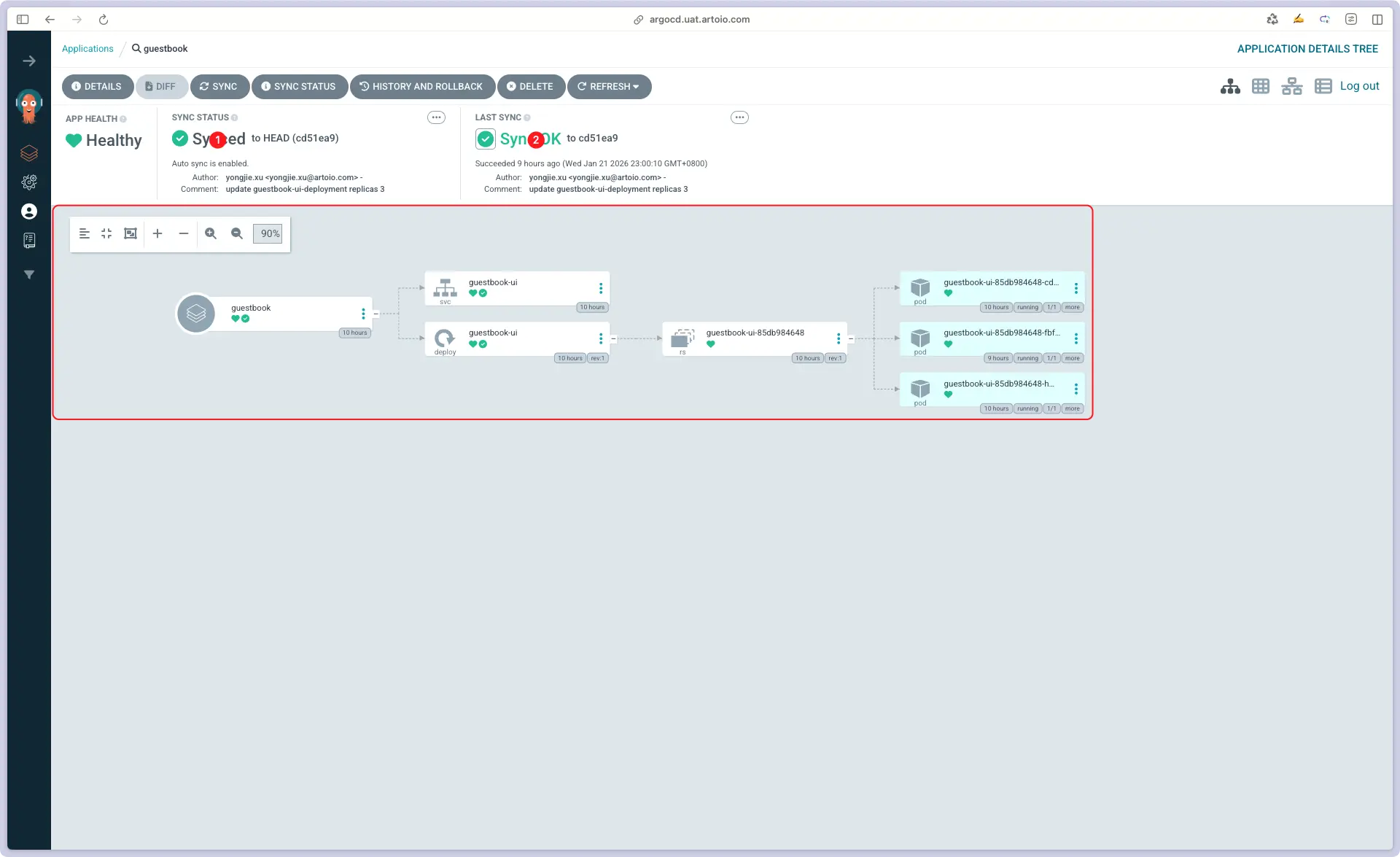 - 同步: ArgoCD 检测到变化,更新集群中的