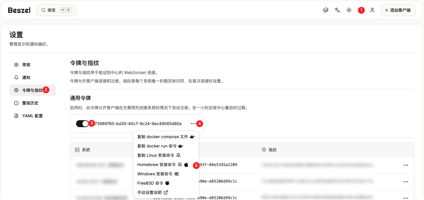 - 打开 beszel 设置,选择 通知 ;拼接 webhook