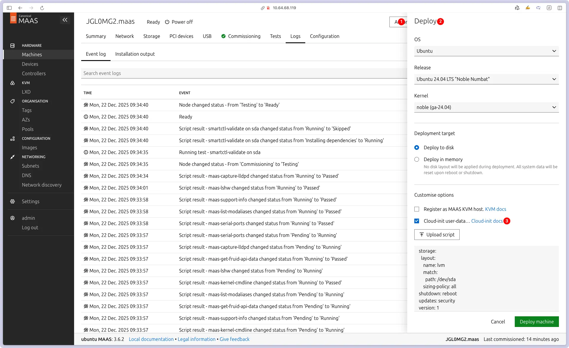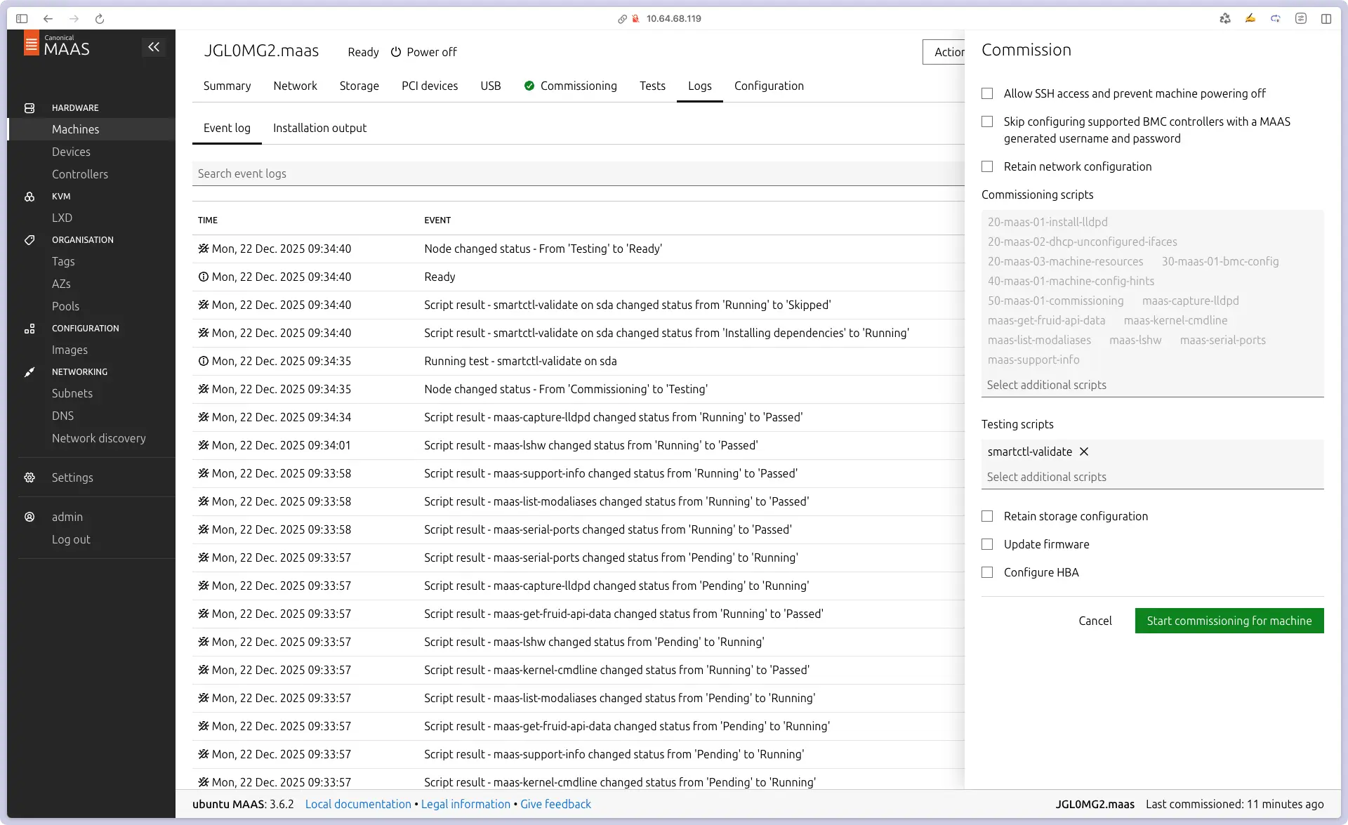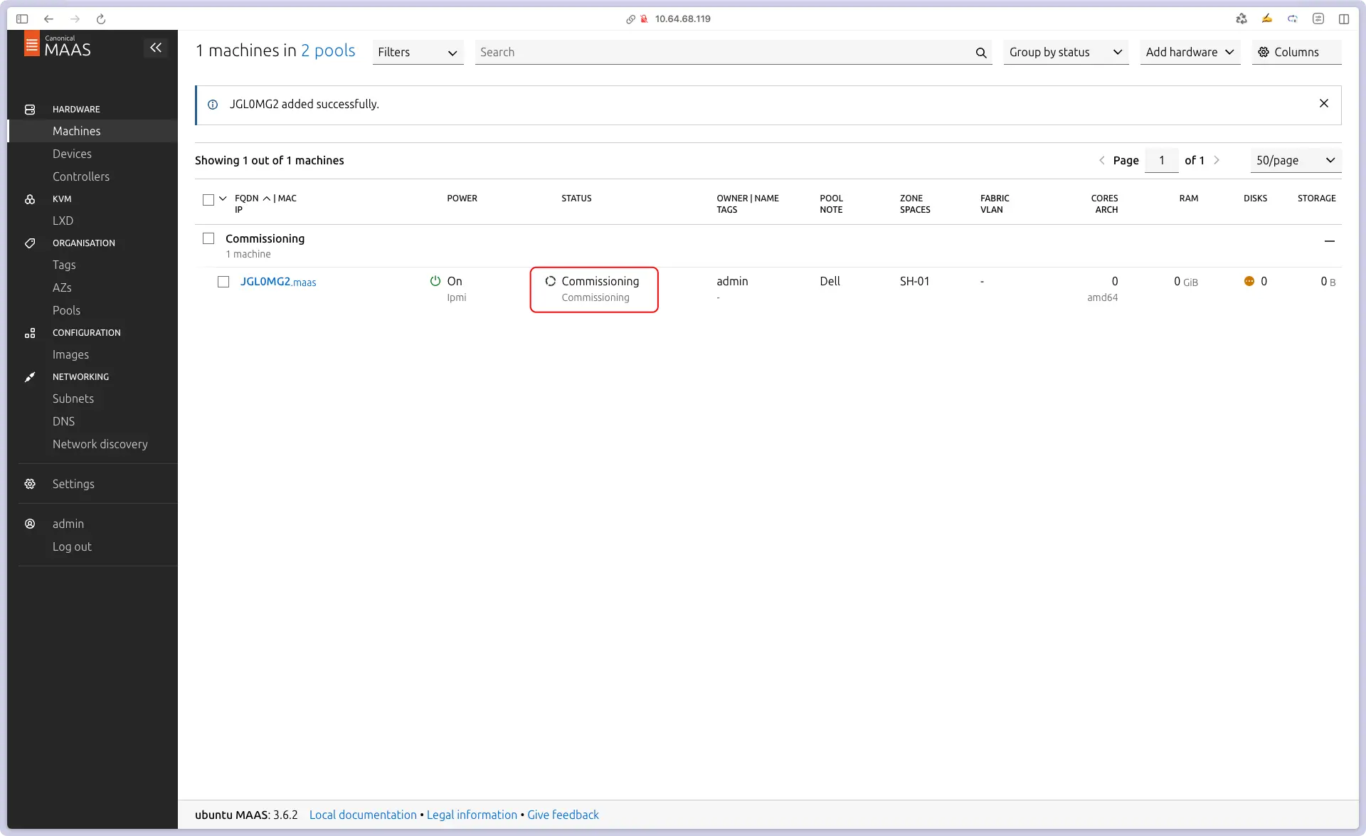打开浏览器,登录 MAAS 控制台: http://10.64.68.119:5240/MAAS/,查看 maas 服务状态