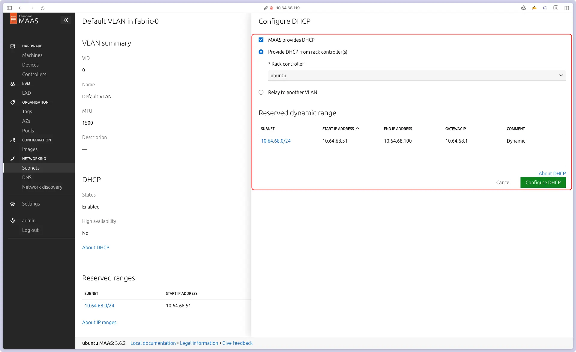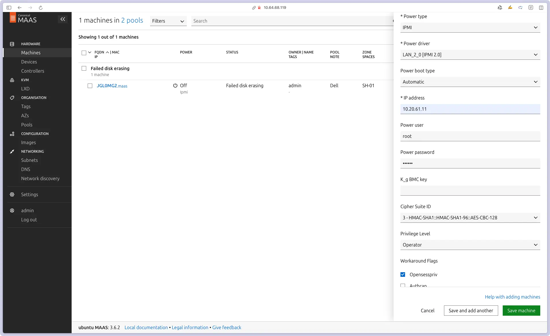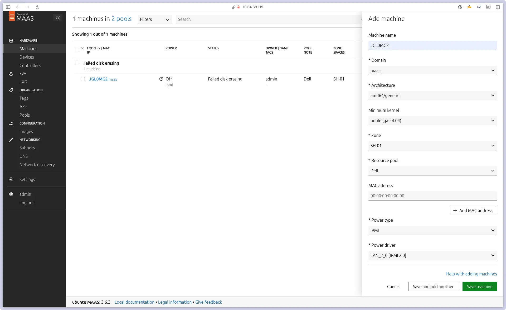 打开浏览器,登录 MAAS 控制台: http://10.64.68.119:5240/MAAS/,查看 maas 服务状态
