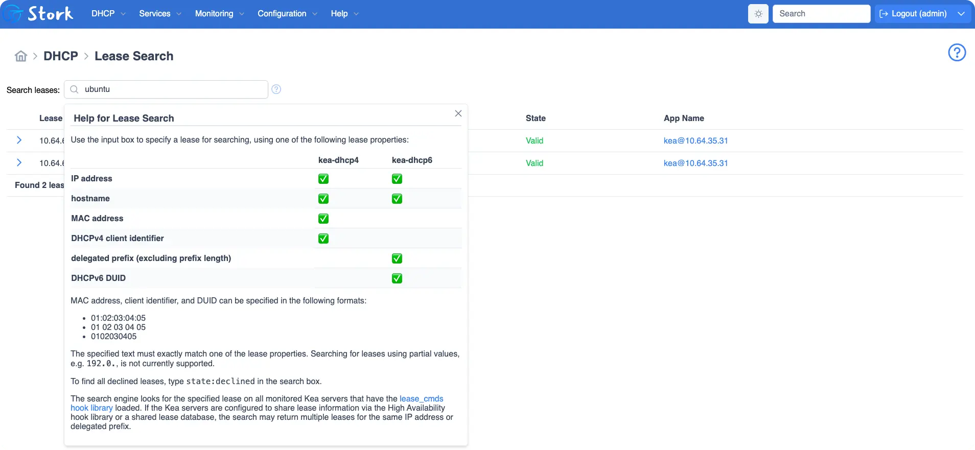 Stork Graphical Management for Kea DHCP。Stork使用Kea时,需要Kea加载对应 hook