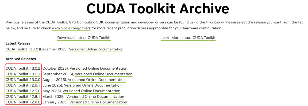 如需安装指定版本,请访问CUDA Toolkit Archive