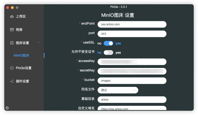 - endPoint: minio API 地址(请勿填写WEB UI地址)